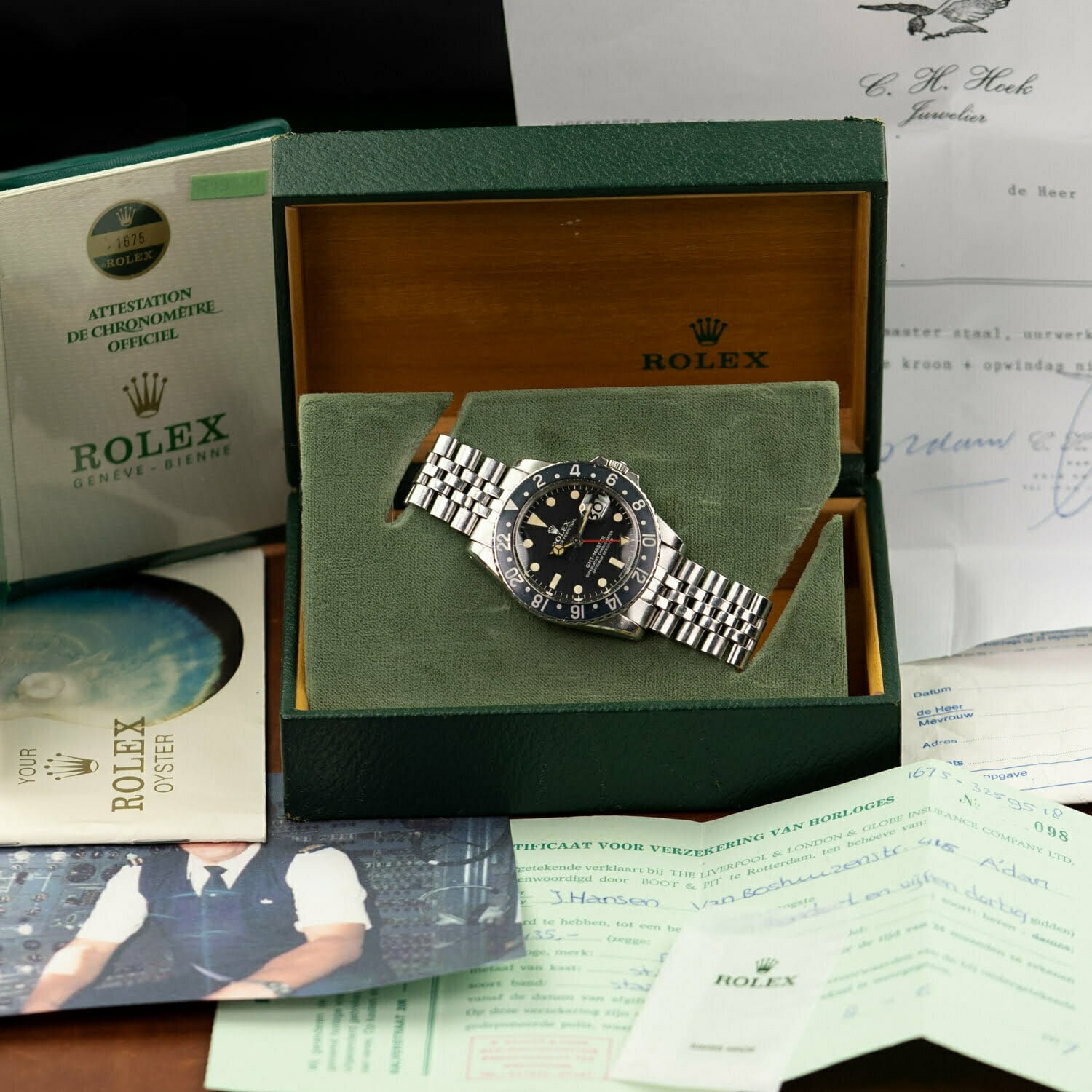 This all sounds very important until you realize that this, more importantly, is a watch that comes with a very cool provenance. It wasn’t worn by Paul Newman or Marlon Brando but actually by someone who really bought the watch for its function. We were very excited when we got the possibility to buy this watch from its first owner who was a pilot on intercontinental flights. Of course, the major part of the watch dealers would try to sell you this story but we actually received a picture of him wearing the watch at the job!