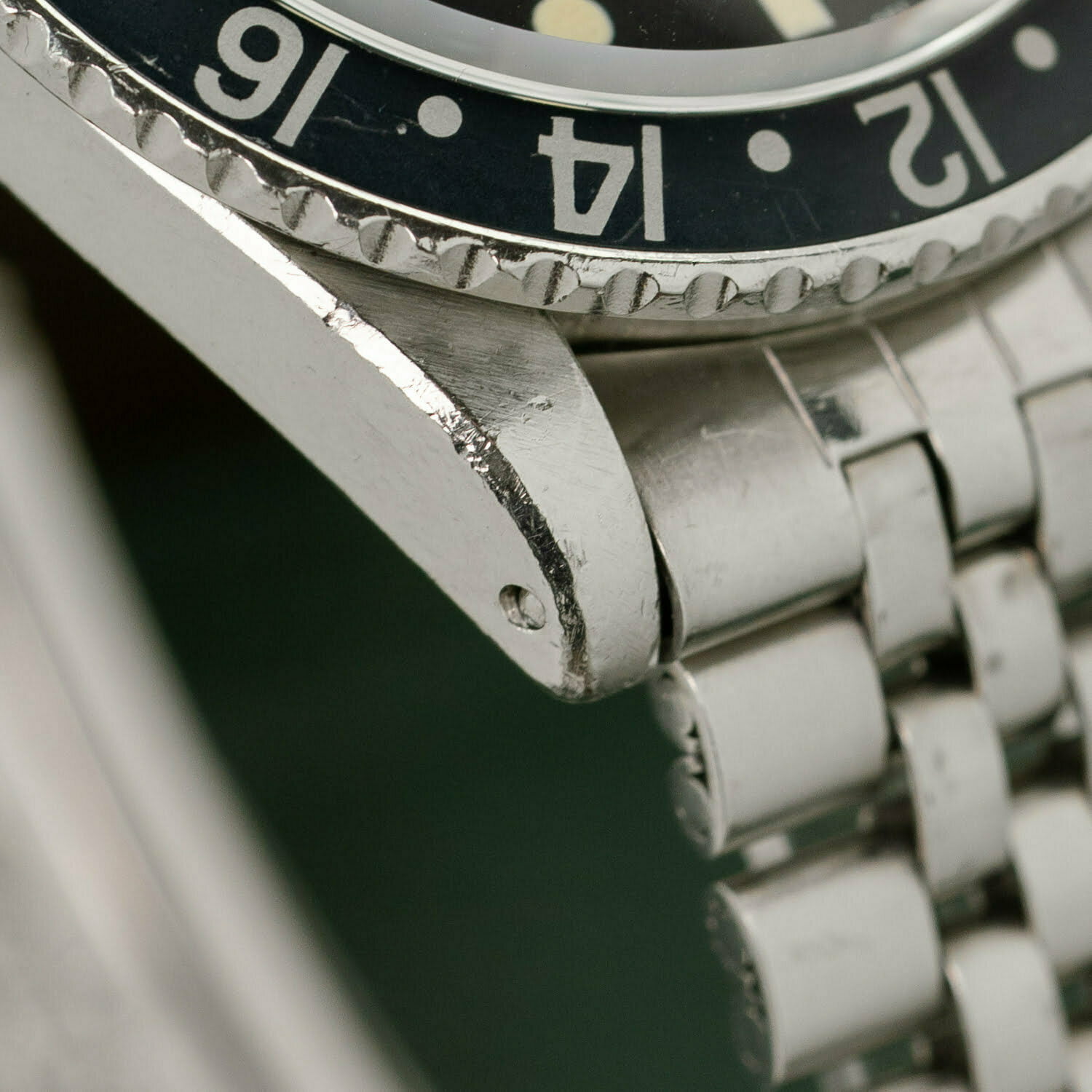 As you can see on the pictures the GMT has a very clean dial where the tritium is beautifully aged to an eggshell-kind-of colour. The bezel insert has discoloured to a very nice blueish/grey colour that perfectly matches the dial as well.