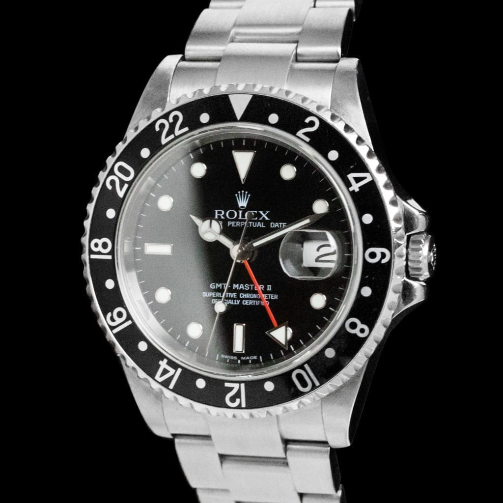 Rolex GMT-MasterFasten your seatbelts for the story of the Rolex GMT-Master. Aviation company Pan-Am requested Rolex to create a wristwatch that would display multiple time-zones simultaneously as their flights got longer and they had to cross multiple time zones. Rolex came up with the GMT-Master (‘GMT’ stands for ‘Greenwich Mean Time’) in 1954. The watch features a date-function and an extra hour hand (with triangle) that points out the second time zone on the bi-directional turning, 24-hour bezel.Still linked to aviation and although meant for professional use, it enjoys a much wider fan base ever since it first saw light. Over the years it underwent some changes and there are so many wonderful variations of this all-time Rolex classic. Some GMT’s are great as a single purchase, others are a wonderful addition to any collection and some of them can be considered as the crowning glory.