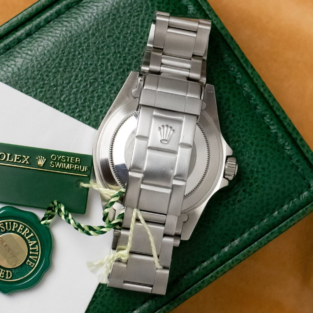As we often say, vintage doesn’t necessarily equate with age. After all, a crappy old watch is just that: a crappy, old watch. Vintage is rather about aesthetics and timelessness. This Submariner is the quintessential example of a youngtimer vintage watch.If the ref. 5513 is the iconic vintage Sub, then the 14060 is its undisputed heir. Launched in 1989, the 14060 combines the best of both worlds. It combines the classic slender 40mm Oyster case with drilled lugs—a far cry from the bulky maxi cases of today—with the no-nonsense two-line ‘no-date’ dial. It also sports an aluminium bezel insert that, unlike the modern ceramic bezels, often fades beautifully over time. On the other hand, it sports a modern glossy black dial with white-gold applied hour markers and, of course, a sturdy sapphire crystal.The watch we have now is a 14060M, with the ‘M’ indicating Rolex’ improved cal. 3130 self-winding movement housed in a clean and razor sharp case. The matching Oyster bracelet is in excellent condition with barely any scratches or stretch between the links. To top it all off, it comes with the original box and papers, which date back to 2007.
