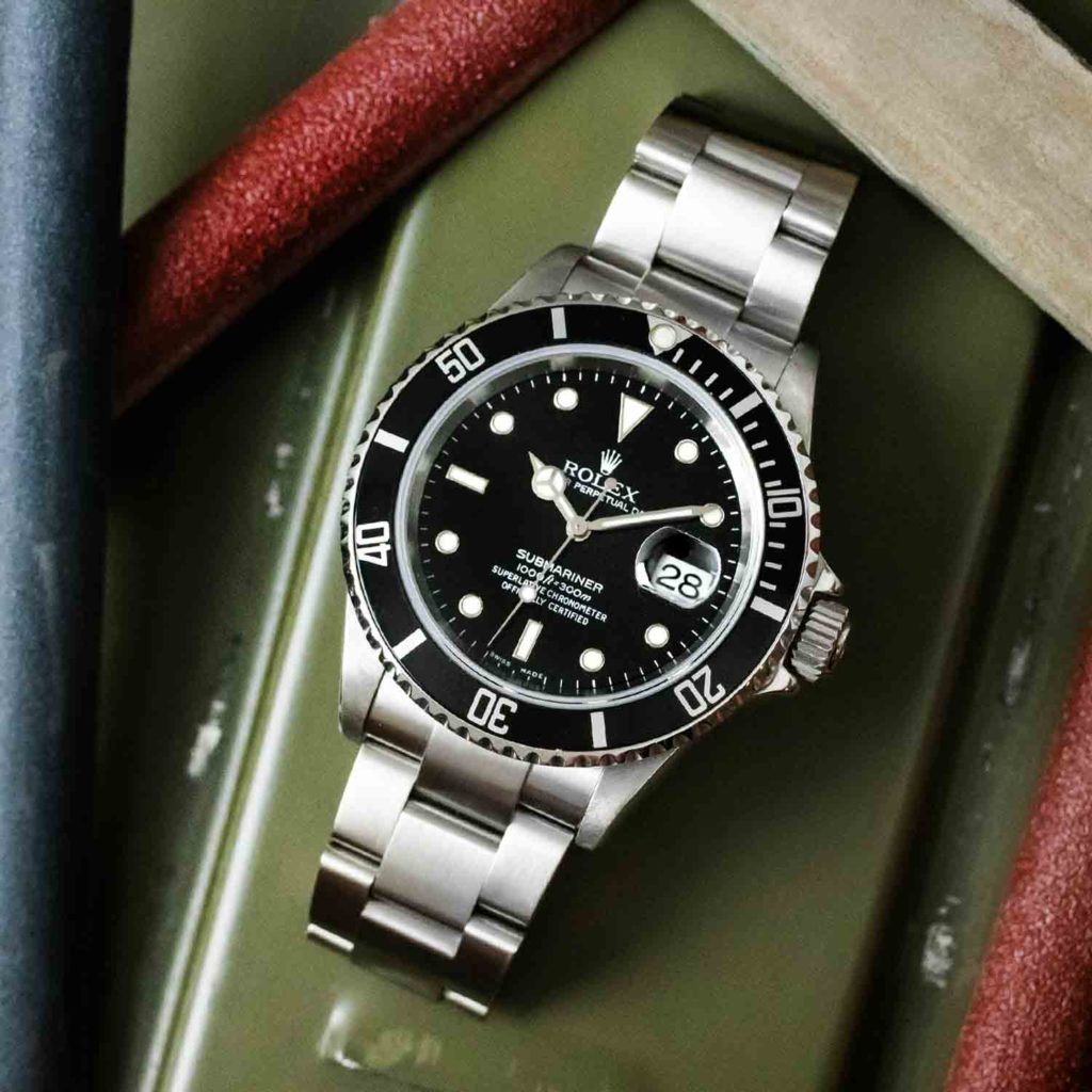Rolex SubmarinerVisionary Hans Wildorf set out to make the world’s first waterproof and dust proof wristwatch and so, in 1926 the ‘Oyster case’ was created. Then, later on in 1953, the Rolex Submariner was born, with a water depth rating of 330ft/100M making it one of the world’s first wristwatches designed for the upcoming sport of scuba diving. The wristwatch was created for divers who needed a precise watch which could scale to such depths and be a reliable and accurate way of measuring (with the turning bezel) the time spent underwater. A major aspect of creating such a time piece was to make it easily legible yet aesthetically pleasing, hence the large contrasting white tritium hour markers and Mercedes hand on the black dial. The rugged look was adopted by no other than Mr Bond himself (Sean Connory as Bond wore it in 1962’s ‘Dr. No’ and the watch was also featured in the later ‘Goldfinger’ and ‘Thunderball’ movie). A legend was born and overtime it proved to be arguably one of the best, most desirable and iconic luxury watch of all time.