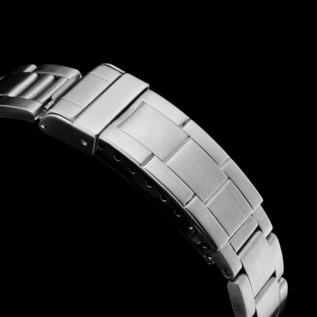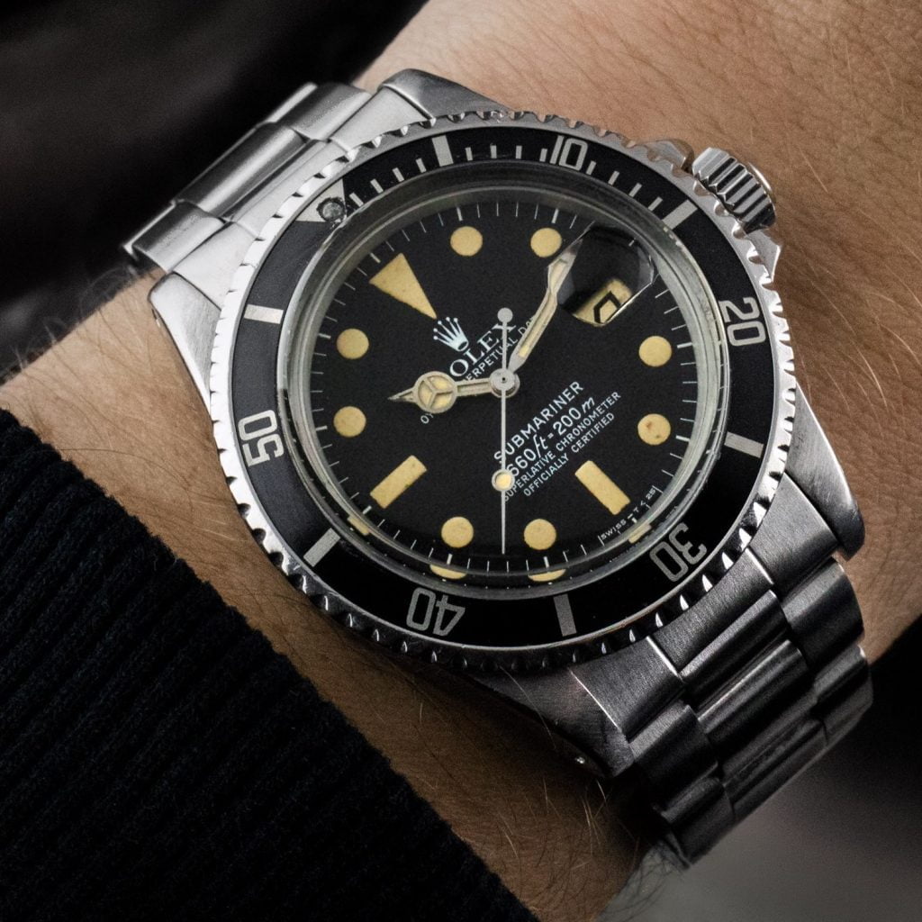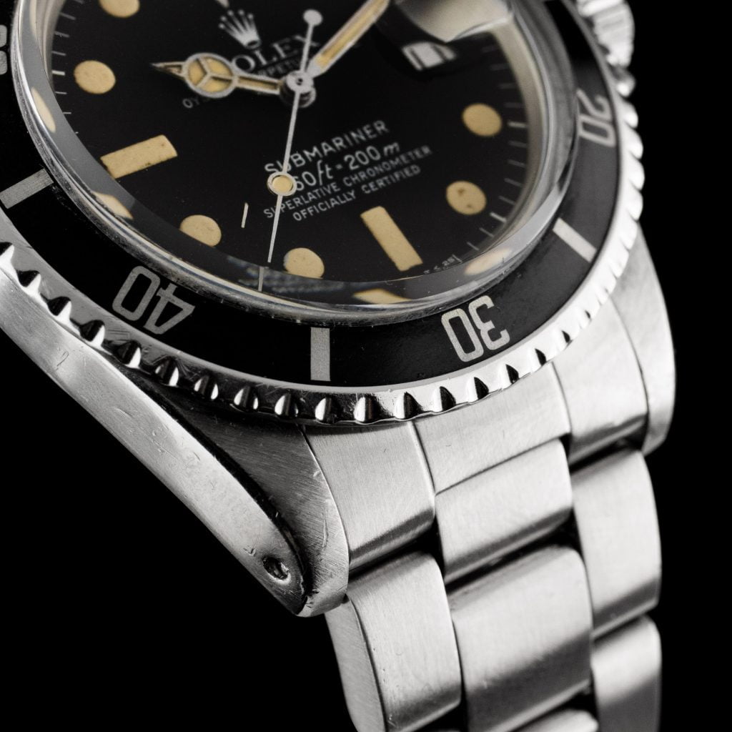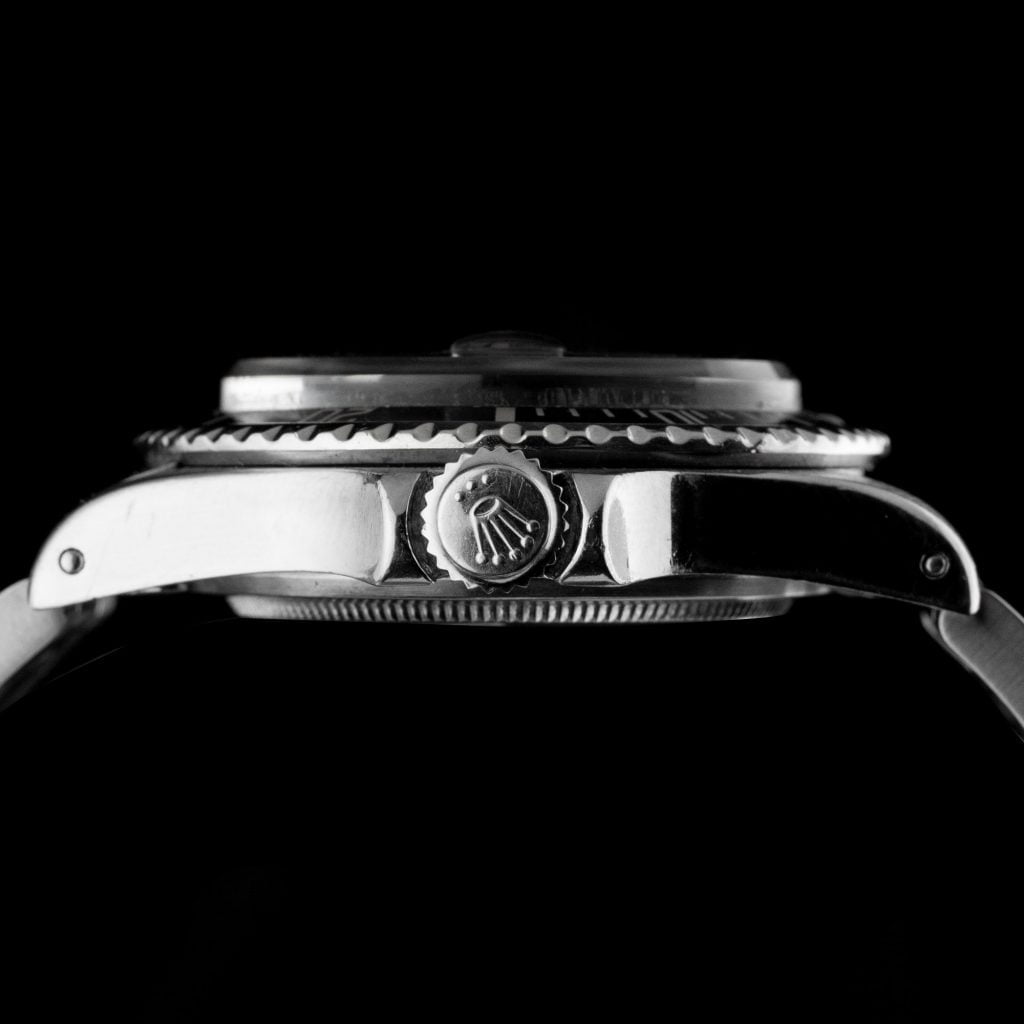 Let's dive deeper into this beauitful 1680!The 1680 was introduced in 1969. It was the first submariner with a date function displayed at the 3-hour position. You might think right now: “Why would Rolex put a datefunction on a diving watch?” Well, because it rapidly became more than just a diving watch. During the sixties, the Submariner was so popular amongst everyone that Rolex adjusted the model based on the demands for everyday use. Nowadays, this watch is such a classic and therfore, it has been on the wirsts of many cult figures. This stainless steel specimen is very handsome as the tritium plots have aged so beautifully into a creamy colour and they match perfectly with the handset. Moreover, the bezel is still in great condition and has barely lost its colour. The watch has the nice case size of 40mm, which is the perfect size for a sportive, yet formal watch. It comes with a solid oyster bracelet that is in mint condition. This is a very early example as it belongs to the first batch of Submariners with a white text, which Rolex introduced in 1975.