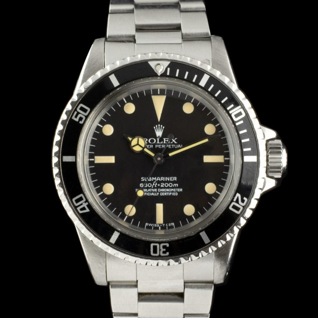 Rolex SubmarinerVisionary Hans Wildorf set out to make the world’s first waterproof and dust proof wristwatch and so in 1926 the ‘Oyster case’ was created. Then later on in 1953, the Rolex Submariner was born, with a water depth rating of 330ft/100M making it one of the world’s first wristwatches designed for the upcoming sport of scuba diving. The wristwatch was created for divers who needed a precise watch which could scale to such depths and be a reliable and accurate way of measuring (with the turning bezel) the time spent underwater. A major aspect of creating such a time piece was to make it easily legible yet aesthetically pleasing, hence the large contrasting white tritium hour markers and Mercedes hand on the black dial. The rugged look was adopted by no other than himself Mr Bond. (Sean Connory as Bond wore it in 1962’s ‘Dr. No’. The watch was also featured in the later ‘Goldfinger’ and ‘Thunderball’ movie.) A legend was born and overtime it proved to be arguably one of the best, most desirable and iconic luxury watch of all time.REF. 5512The Submariner 5512 was produced between 1959 until 1978. This was the first Submariner model featuring crown guards, which were to protect the Oyster crown. The rare pointed crown guards made their first appearance with this model and were later on replaced by the rounded crown guards. The base calibre for the 5512 was the cal.1530 (2 line dial), then also had the chronometer 1560 and 1570 calibre (4 line dial). A water depth rating of 200m/660ft.REF. 5513The Submariner 5513 was produced between 1962 until 1989. This Submariner model features crown guards which were to protect the Oyster crown. The rare pointed crown guards made their first appearance with this model and were later on replaced by the rounded crown guards. The base calibre for the 5513 is the 1530, which is not chronometer certified and therefore the dial bears 2 lines of tekst. (Instead of 4-lines chronometer dials)