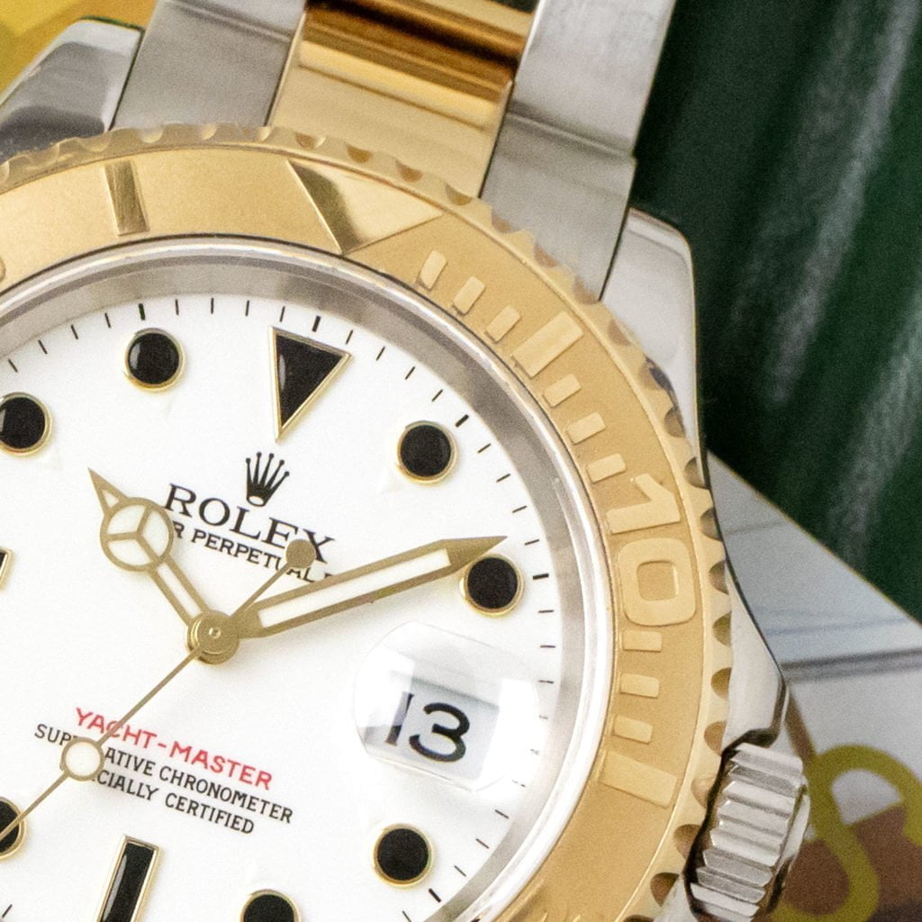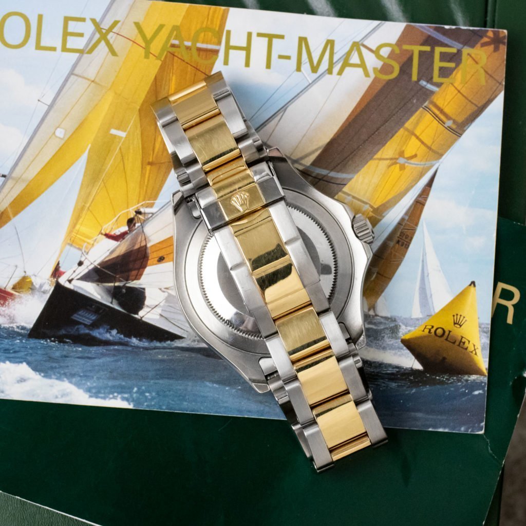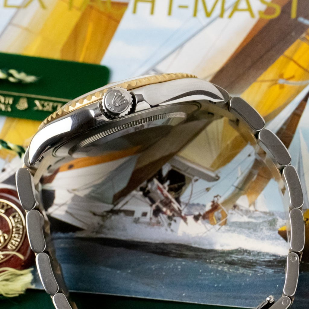 Rolex Yacht-Master In 1992, Rolex introduced a nautical watch named the Yacht-Master. However, unlike the Submariner, the Yacht-Master was not a tool watch for diving but a luxury watch for boating. More specifically, it was made for yachting so it had to have a luxurious but sportive look. As many say, Rolex achieved this by adjusting a Submariner; bigger hands, bigger markers, smoother edges and a solid bezel with an engraved inlay. The first reference was the 16628, an 18k yellow-gold wrist watch with a case diameter of 40 mm, a white dial, black hour markers and the caliber 3135 (as was used for the Submariner and Sea-Dweller). In 1994, Rolex introduced a midsize and ladysize version. In 1999 the brand presented the steel/platinum version (ref. 16622), which instantly became a success.