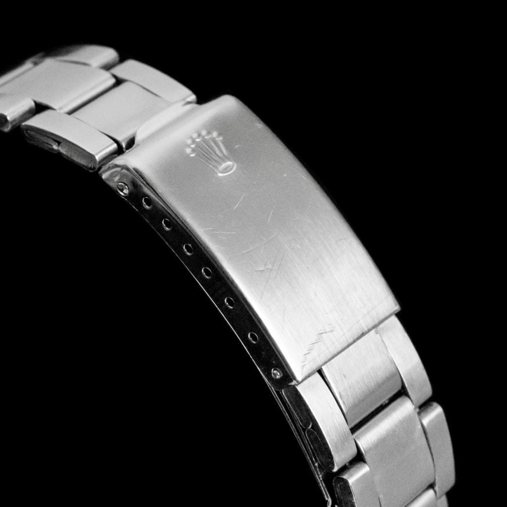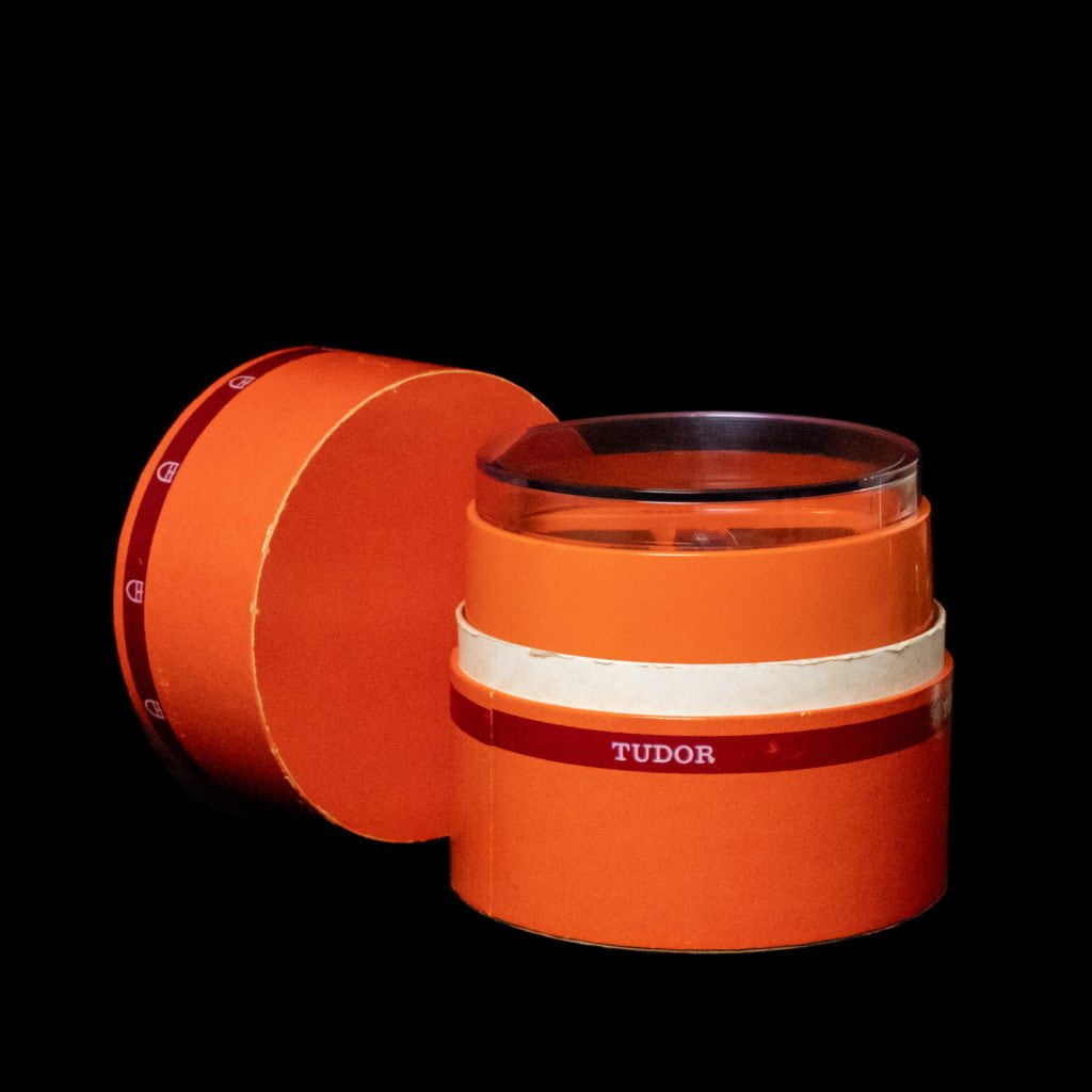 The very first and rarest of all Tudor chronograph watches: reference 7031! The 'Homeplate' exceeds the rarity of its Rolex counterparts with so-called 'Paul Newman dials', making this the holy grail of any Tudor enthusiast. Furthermore, this is the only one currently known to be on the market as a full set and in museum condition.In 1970 Tudor produced their first 2 chronograph references, one with the stainless steel bezel and one with acrylic inlay. Both were fitted with screw-down pushers and featured a colourful dial design that enhanced the funky '70s vibe. For the minute-track, the lacquered chronograph hand and the minute totaliser a bright orange was used. Furthermore, the markers are eye-catching because of their yellow colour. Not only is this watch special just because of the colour, but also thanks to its shape, which is why it was dubbed the 'Homeplate'.Recently, the 'Homeplate' was awarded with a re-edition from Tudor, truly granting this watch the cult-status it deserves. However, as is the case with many sought-after historic models, it lacked popularity back in the day. This explains why the original papers were filled in and sold in 1976, four years after discontinuing this reference! Besides the original paperwork from Brussels, the box is also something that can't go unnoticed. This valuable collector's item is quite funny as it implies it can be used as an ashtray or box for cigarettes or peanuts.Given the fact that the previous owner kept all these artefacts, it does maks sense the watch has also been kept in all-original condition, something that we hardly see for this reference. Possibly, because it uses lots of the same parts as the Daytona, which is way more valuable. For example, the bezel, MK0 Pushers and 700 crown, that total up to an amount of over €8000,-, were often replaced by service parts and sold separately. A unique feature of this model, requiring a rare and impossible to find crystal, is the date window displayed at the 6 o'clock position. Less rare but a necessity nonetheless is the original folded Oyster bracelet that is still supplied to this magnificent barn find.