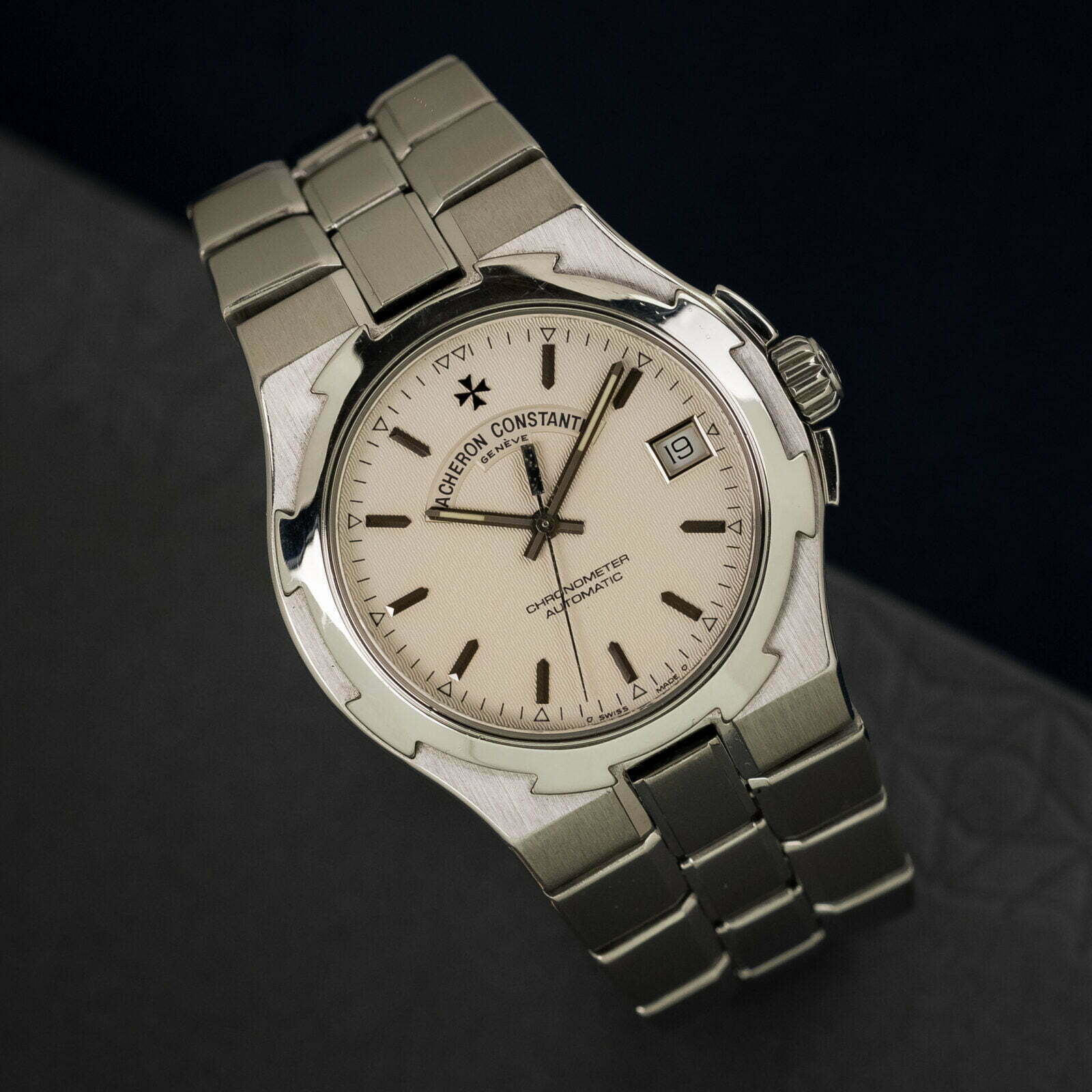 The luxury sporty Overseas was first introduced by Vacheron Constantin in 1996. That it was inspired by the 222 is crystal clear but this time around it was not Jorg Hysek. Dino Modolo is the name, after he designed the Phidias earlier on. It also featured a thin barrel shape case, scalloped screw-down bezel, a sturdy integrated bracelet, as well as proper water resistance grading. Nevertheless, the Overseas took the luxury sports watch in a decidedly modern direction. While the 222 was fine and elegant, the Overseas was much more confident due its more slab-like case with oversized crown, a much more pronounced bezel, and chunky bracelet.