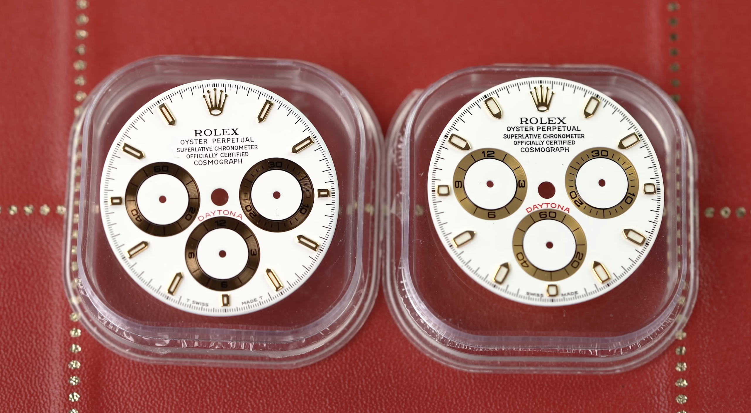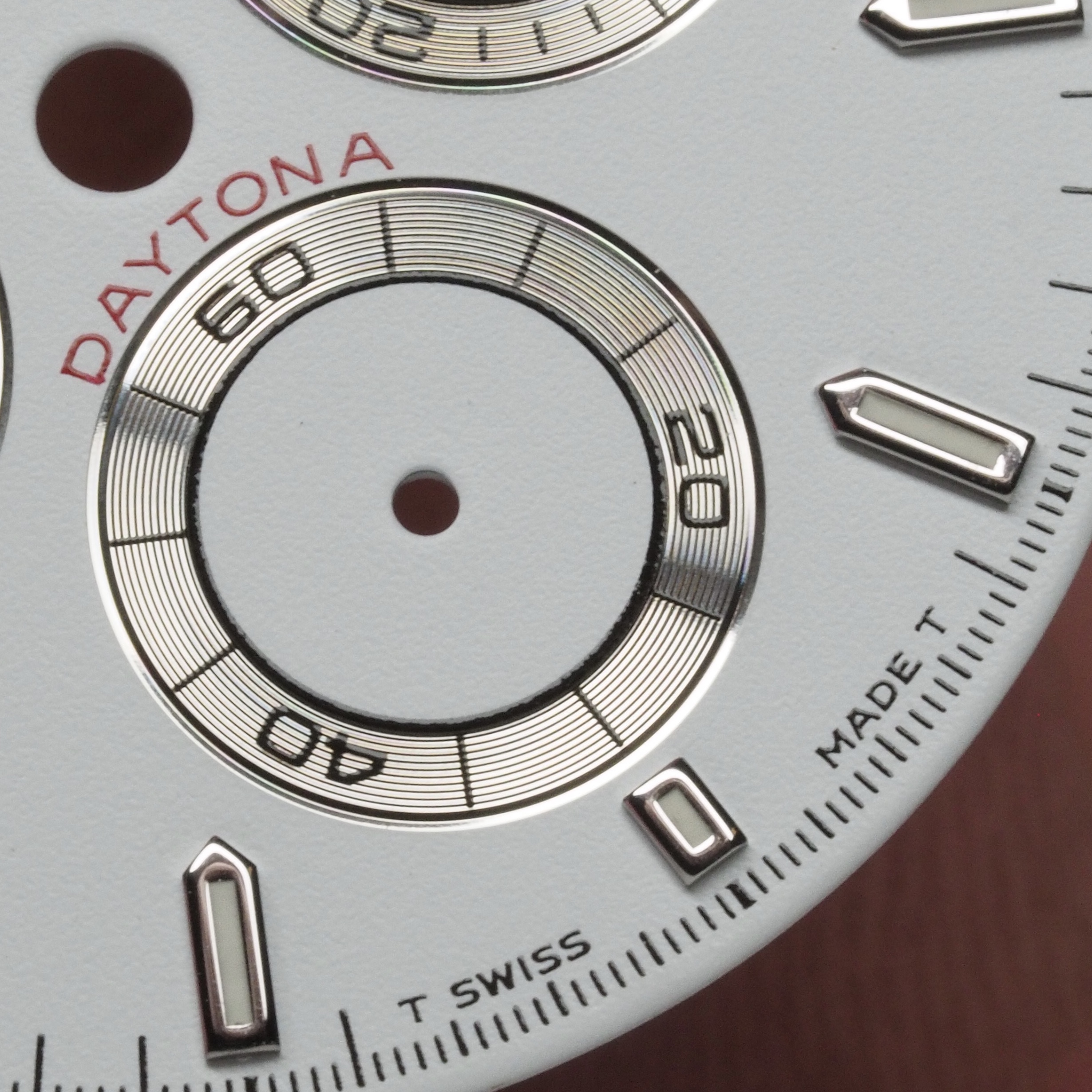 After getting in details, it is easy to forget the bigger picture; like the surface of the dial itself. The production of the automatic Daytona’s started off with a very glossy finish for the white ones known as “porcelain”. Due to high production costs and increased fragility Rolex opted for a matte variant instead. With the introduction of the 6-digit refs the glossy dial made a return; albeit not as white and shiny like the “Porcelain” one.